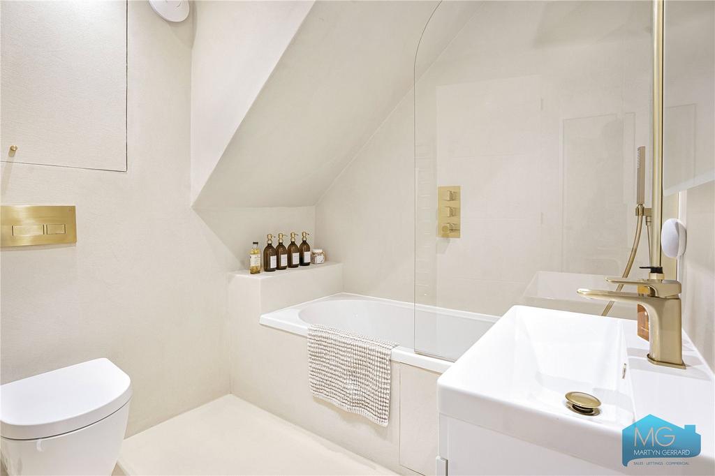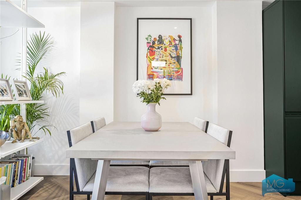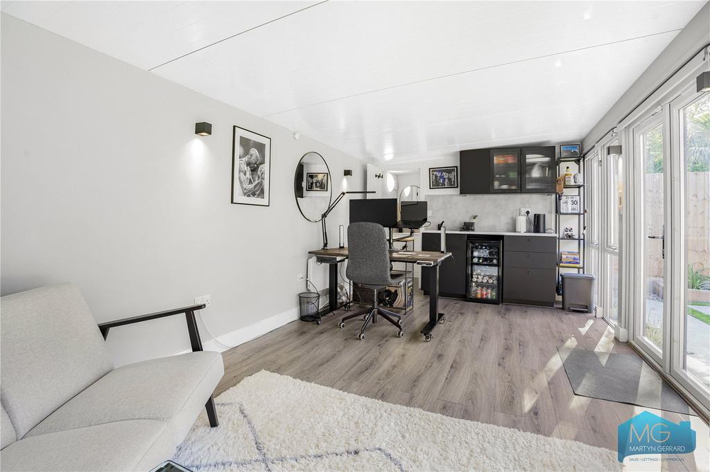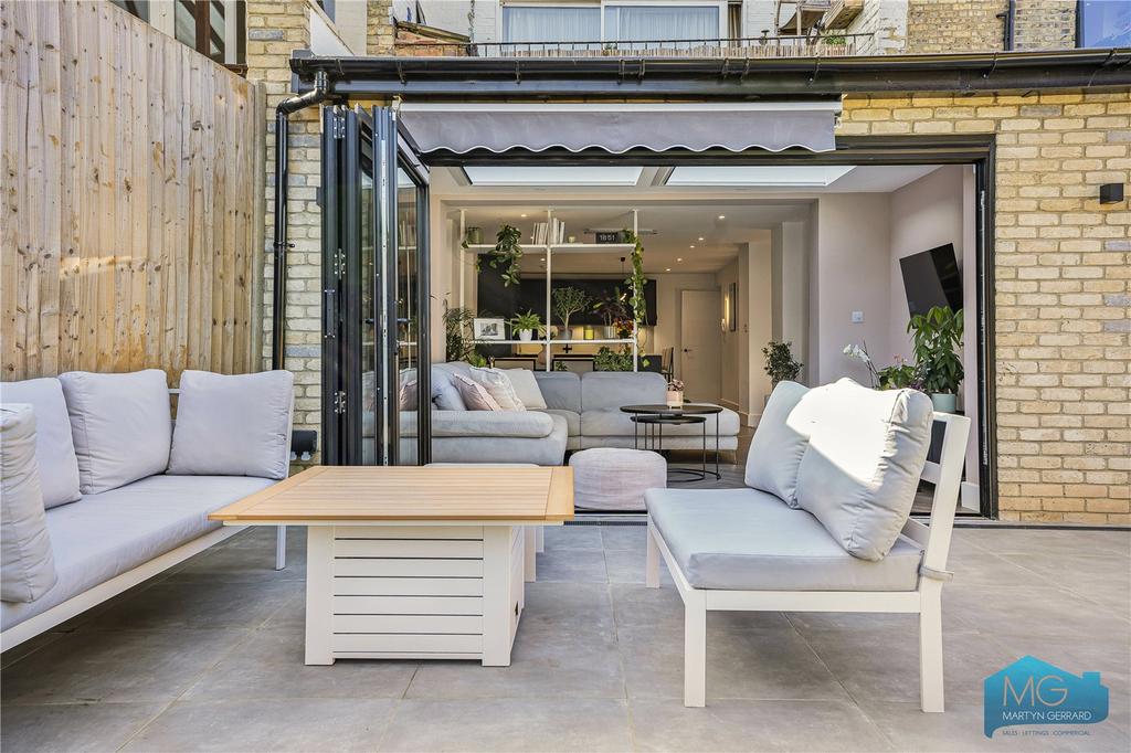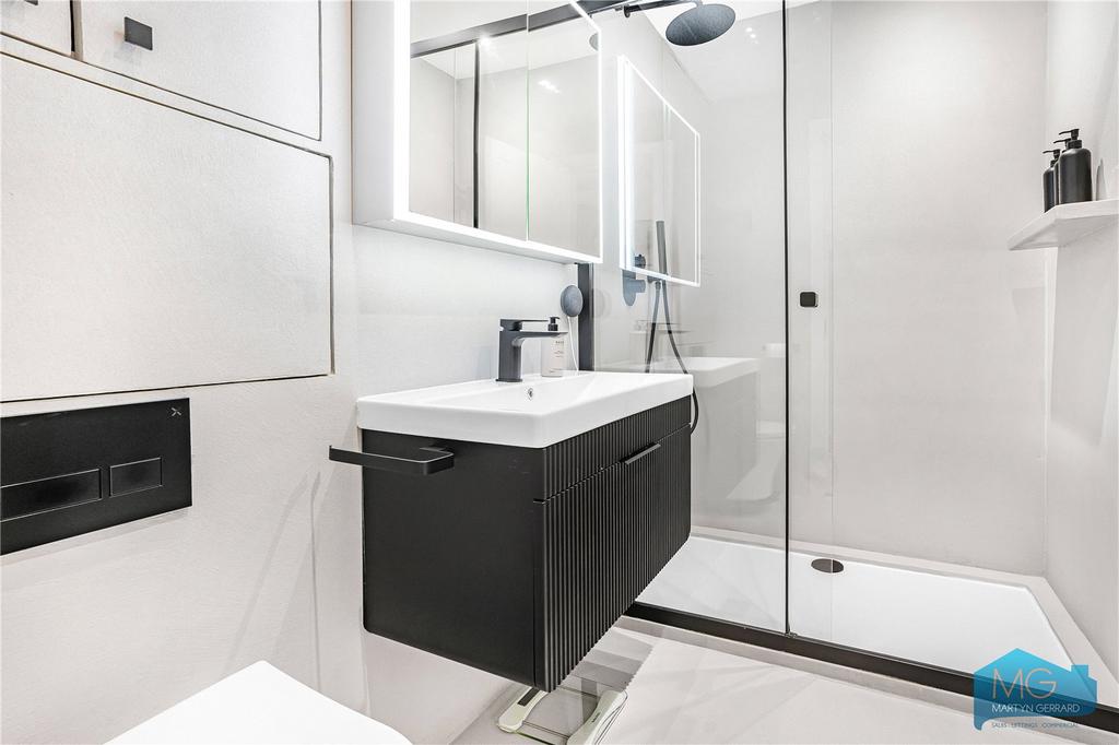 Ground floor garden flat within imposing period building. Architecturally designed with 3 bedrooms, 2 bathrooms, impressive open-plan kitchen-living space flowing into private south-facing garden. Large studio at rear with electricity, water and WC. High specification contemporary finishes. 818 sq ft. Leasehold 138 years. Near Muswell Hill Broadway. EPC E.