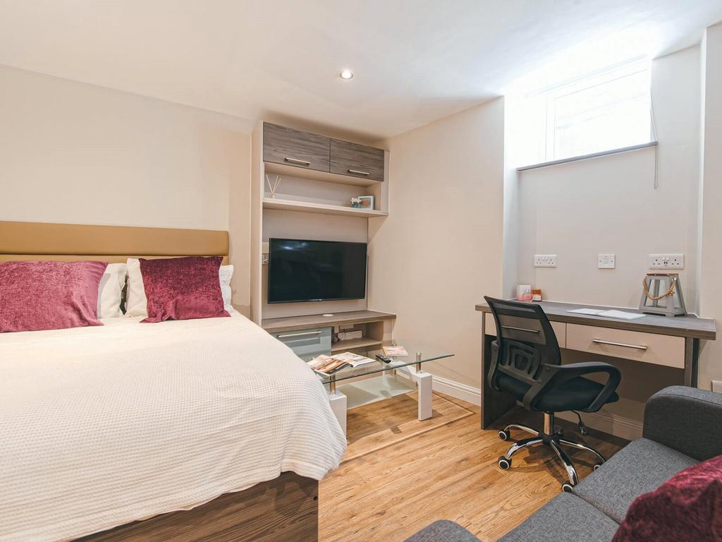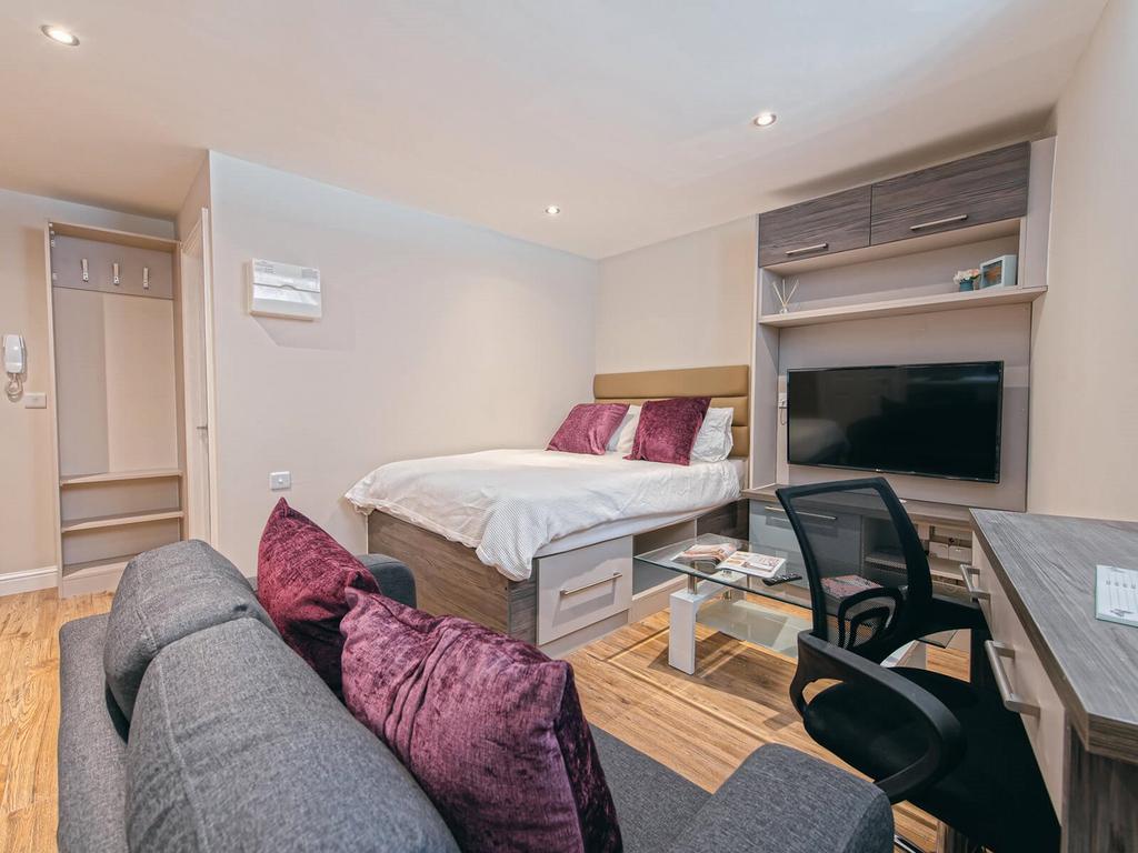 Furnished studio at Eagle House, Manchester M3. Modern open-plan, smart TV, rainfall shower, internet included. EPC C. £865 pcm. Available September 2026.